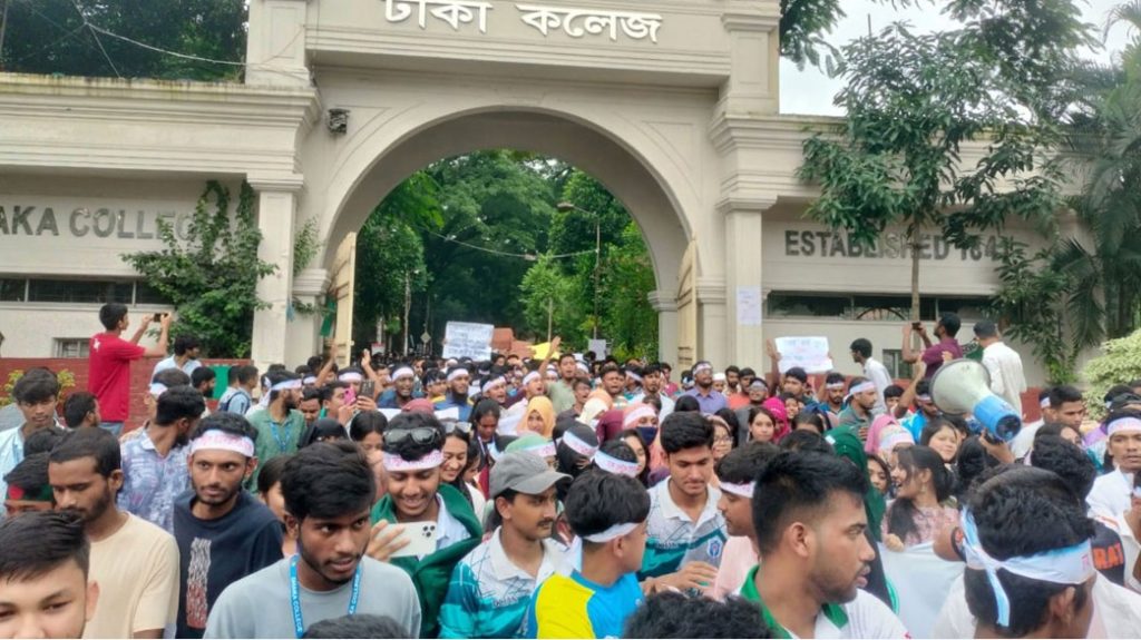 রাজধানীর সাতটি সরকারি কলেজের শিক্ষার্থীরা ‘ঢাকা সেন্ট্রাল ইউনিভার্সিটি’র অধ্যাদেশ দ্রুত জারির দাবিতে বুধবার সকাল থেকে বিক্ষোভ কর্মসূচি পালন করেছেন। সকাল ১০টার পর থেকে শিক্ষার্থীরা ঢাকা কলেজের প্রধান ফটকে জড়ো হতে